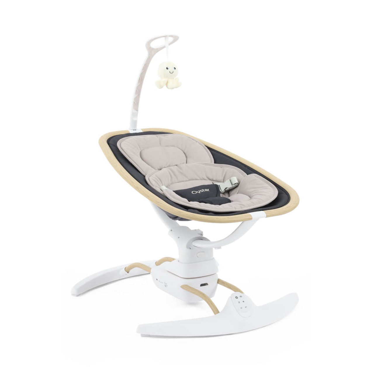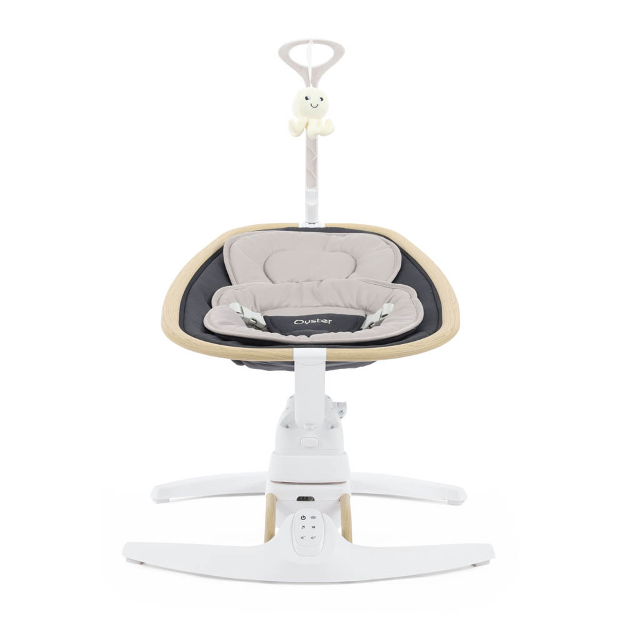 Navigate the rocker effortlessly with the included remote or use the intuitive control panel with buttons conveniently located on the frame. The remote control cradle ensures you never misplace it, keeping everything within easy reach. Safety is paramount, and the Oyster Smart Motion Rocker comes equipped with a secure safety harness to keep your baby snug and protected. The ultra-soft fabrics, complete with a newborn insert and head cushion, cradle your little one in luxury.