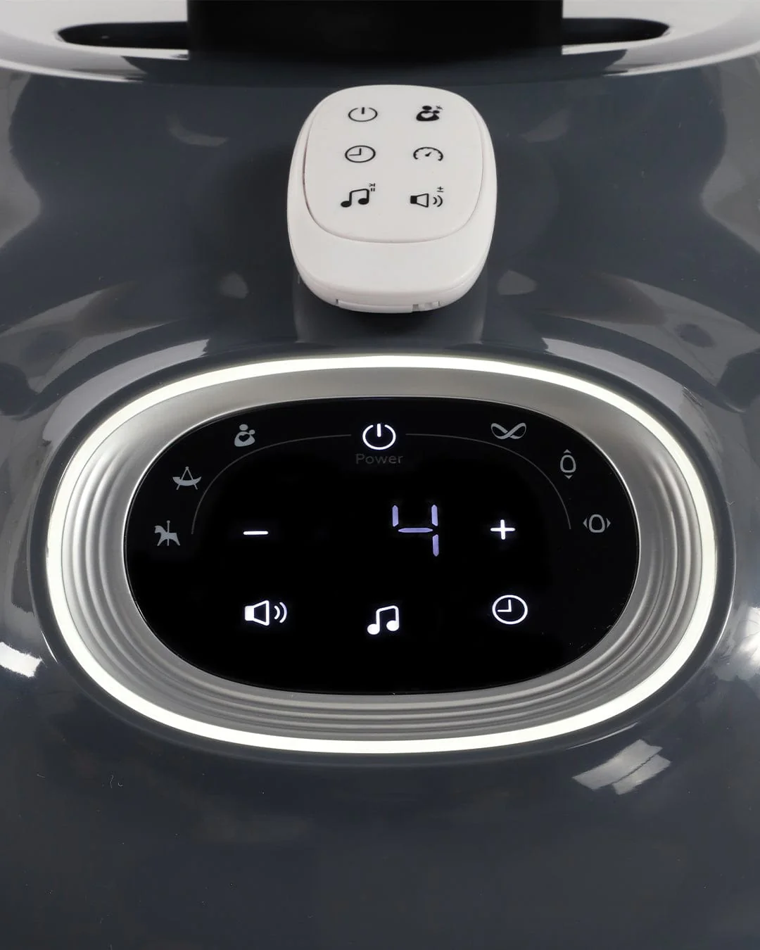 Immerse your baby in a world of sound with 10 built-in tunes and 3 sounds, complete with volume control for the perfect auditory experience. The touch screen control panel, adorned with atmospheric light, adds a touch of sophistication to the luxurious egg Smart Motion Rocker.
