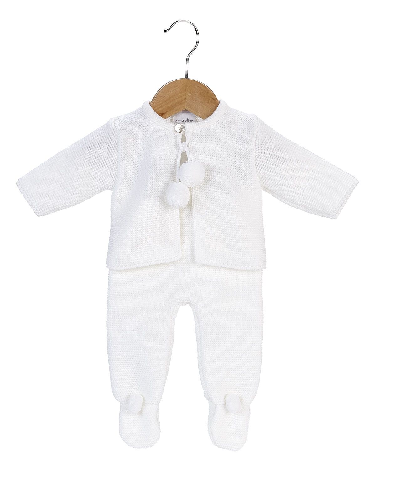 Does it get any more adorable than this? Keep your little one feeling cosy and looking cute in this gorgeous White knitted two piece set from Dandelion. Set includes White knitted cardigan with pom poms and matching knitted leggings.