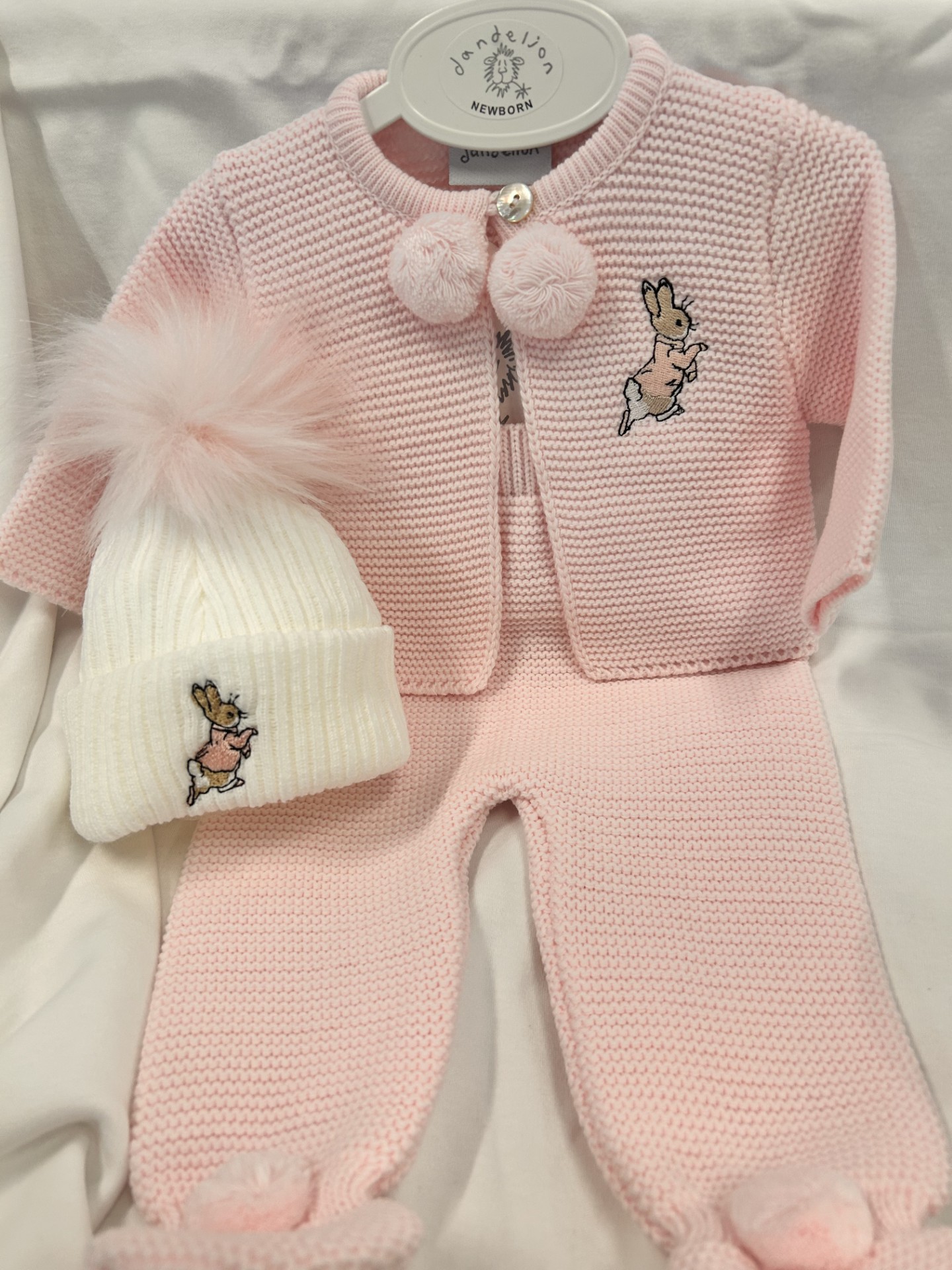 Newborn Beige Run Rabbit Double Pom Pom Hat