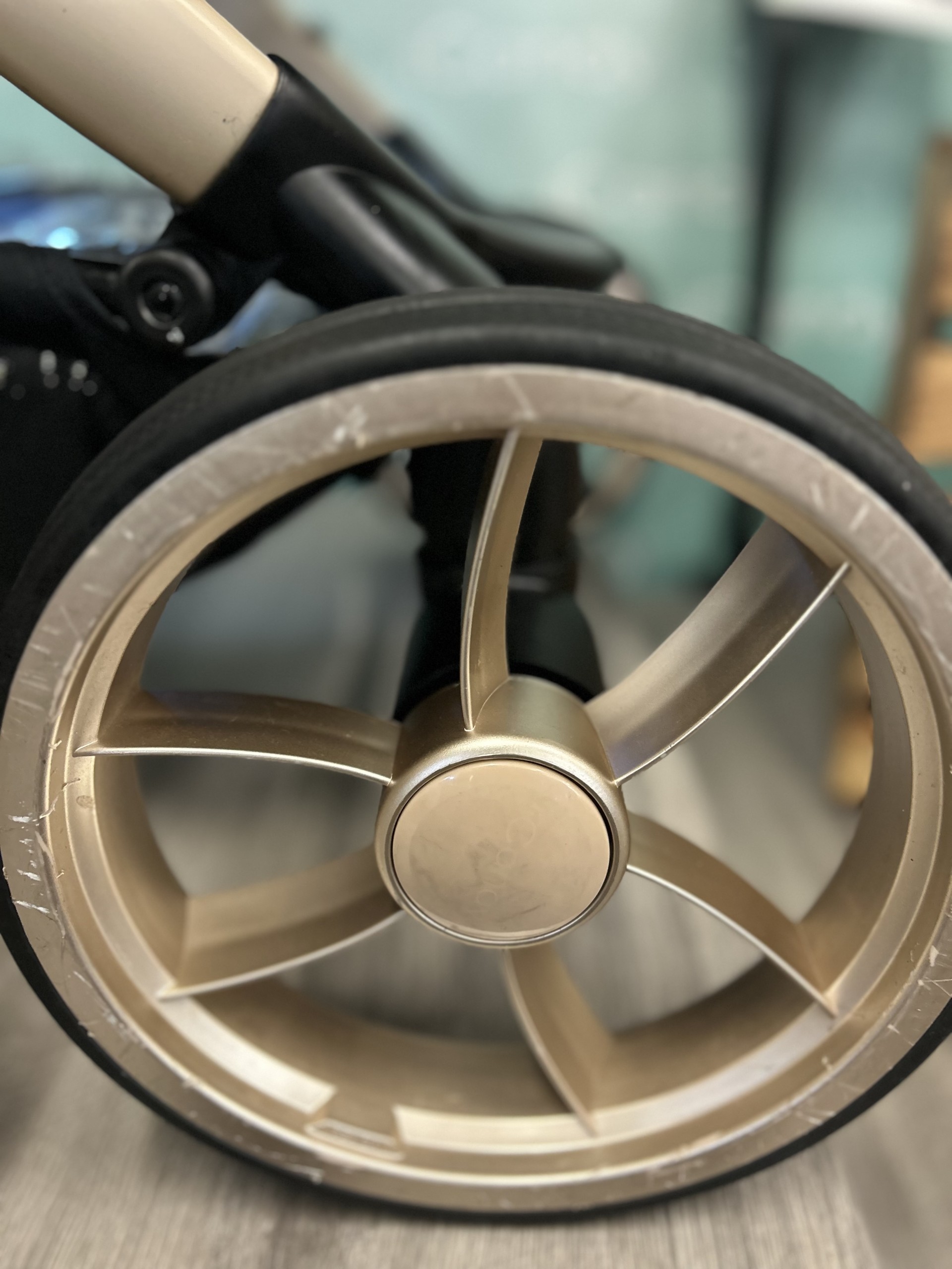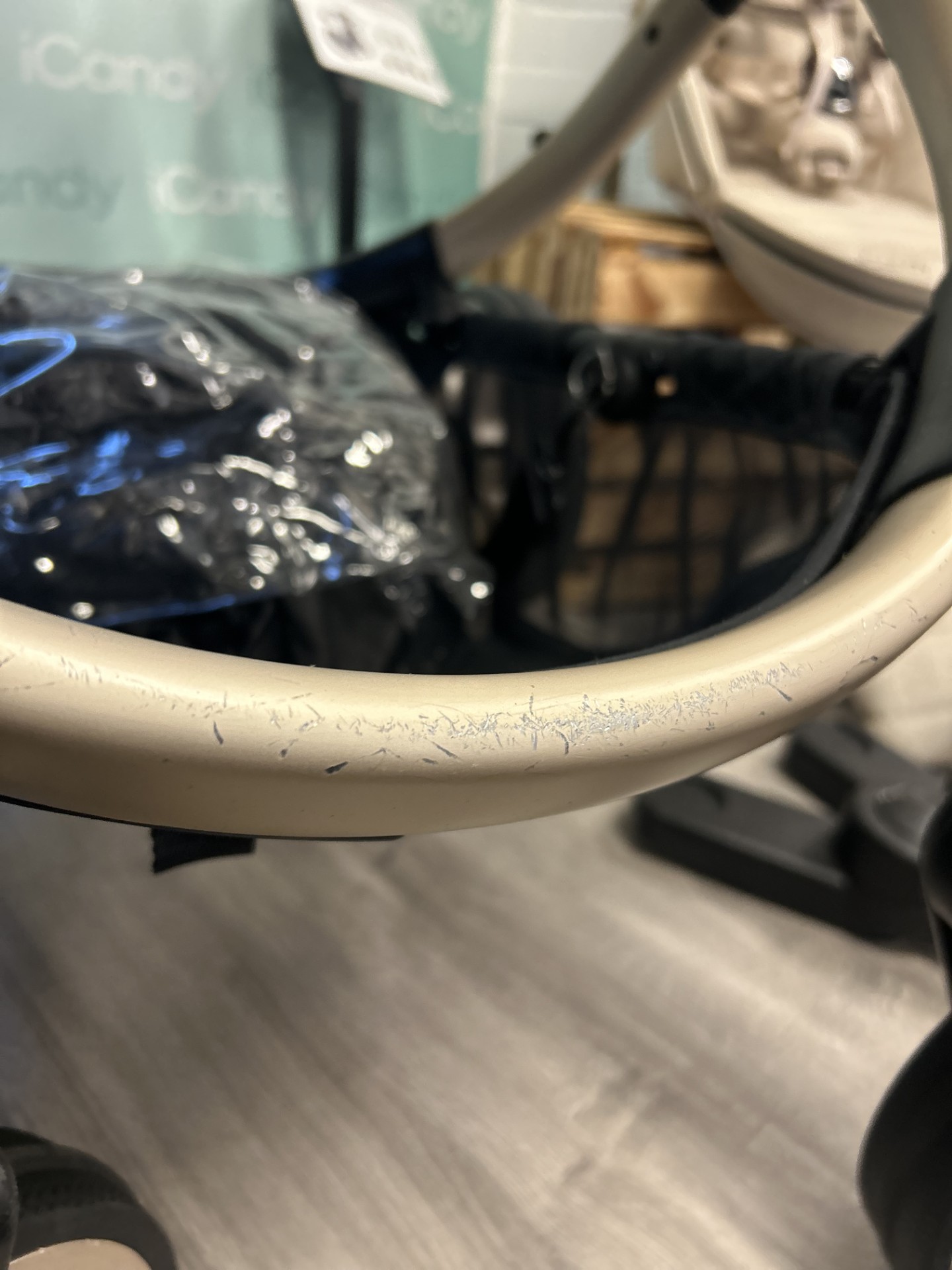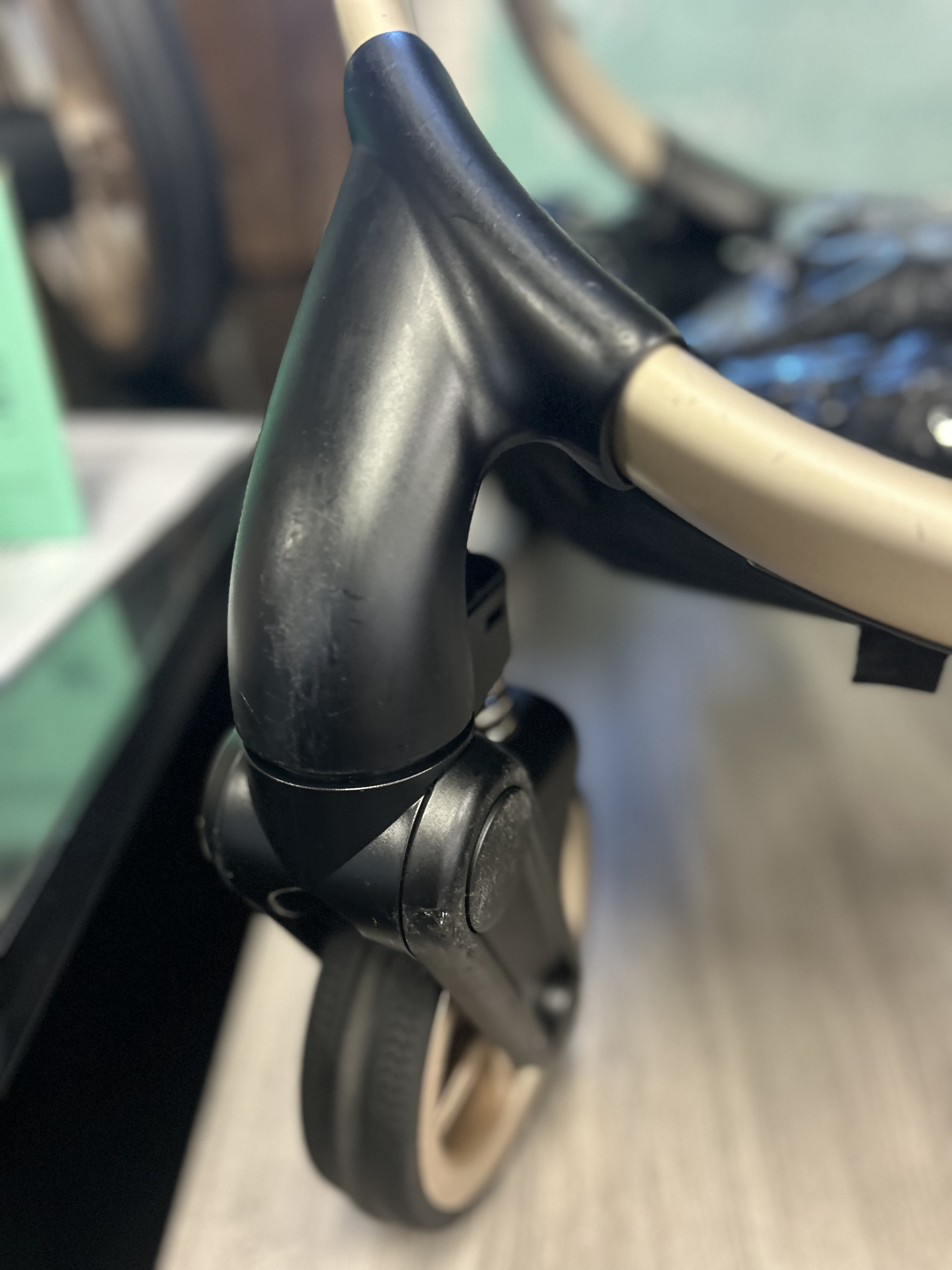This pre loved bundle is in great condition, the fabric is more or less perfect a few little marks but for such a light coloured material its very minimal. The chassis has a few scratches on the front and on the plastic round the swivel wheels this is inevitable on a pre loved chassis, All fabrics have been cleaned & sanatised, Chassis, wheels and brake unit have all been cleaned, lubricated and safety checked. All in good working order ready for its new home!